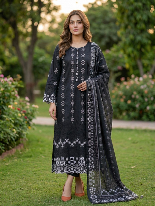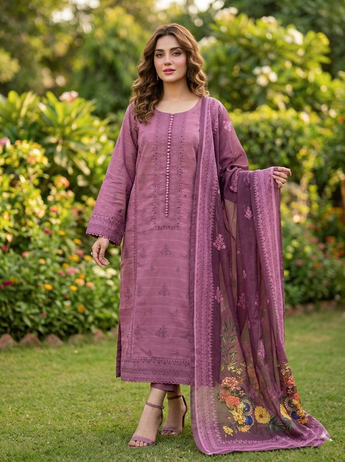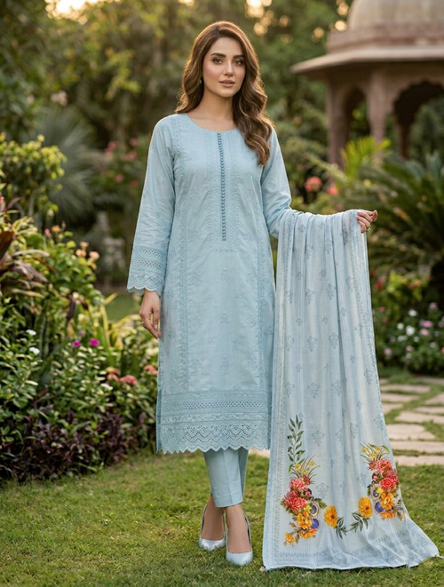 Solid Embroidered Capri Shirt Stitched 3 Piece