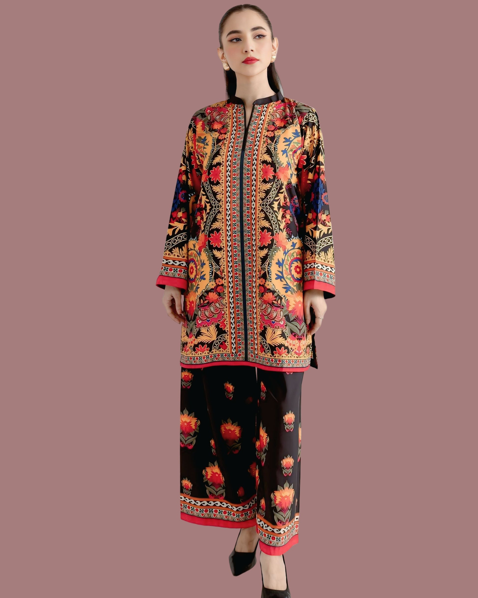 A premium Pakistani silk, short length coat set, crafted with fine quality and elegant design, offering timeless style and refined sophistication